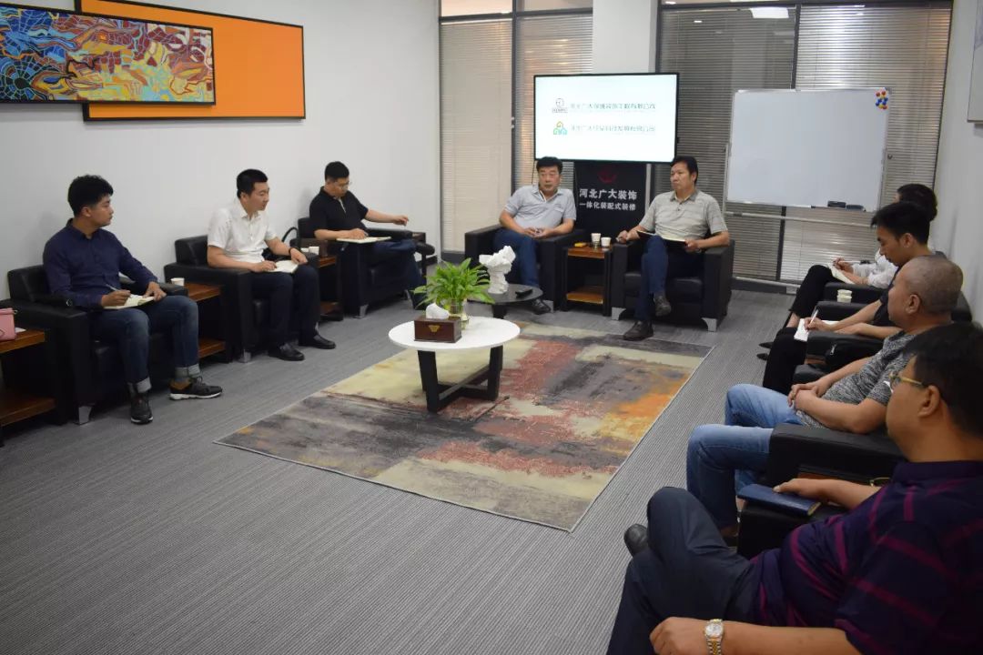 雙方洽談期間,河北廣大公司領(lǐng)導(dǎo)向各公司主要負(fù)責(zé)人介紹了公司概況,國家和省市領(lǐng)導(dǎo)對裝配式建筑的重視,對公司裝配式裝修體系的認(rèn)可關(guān)注,并表達(dá)了對合作共贏的誠意。各公司主要負(fù)責(zé)人在聽取了河北廣大公司的介紹后,共同研討合作方案,為切實(shí)解決河北廣大公司的融資問題進(jìn)行洽談。