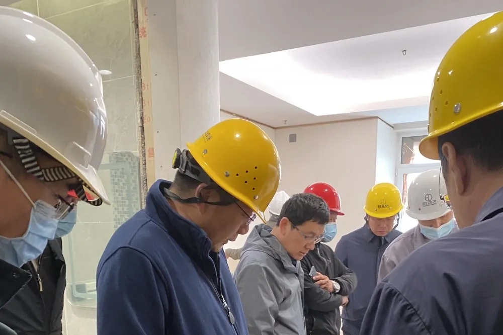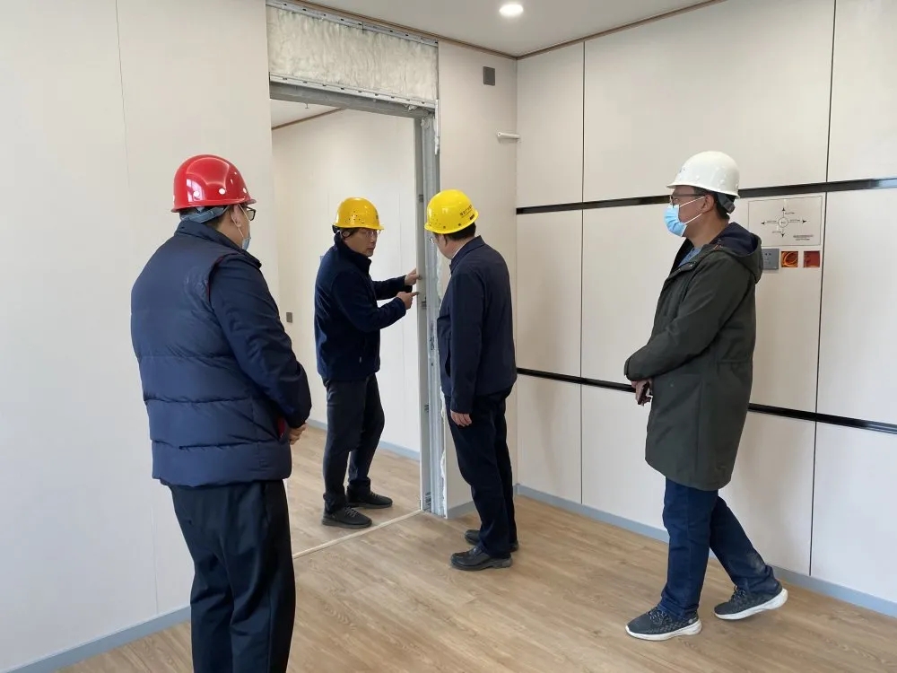 考察期間,秦皇島金色年華普惠養(yǎng)老項(xiàng)目負(fù)責(zé)人簡(jiǎn)單的介紹了項(xiàng)目情況,并帶領(lǐng)考察團(tuán)進(jìn)入2號(hào)自理樓參觀。其內(nèi)部裝配式裝修由我公司負(fù)責(zé)施工,我司董事長(zhǎng)王宏剛向考察領(lǐng)導(dǎo)逐一介紹此項(xiàng)目中運(yùn)用的部品體系:架空地面系統(tǒng)(含地面、地暖系統(tǒng))、集成墻板系統(tǒng)、干法快裝瓷磚系統(tǒng)、集成廚房系統(tǒng)以及輕質(zhì)隔墻系統(tǒng),并對(duì)考察領(lǐng)導(dǎo)提出的問(wèn)題進(jìn)行詳細(xì)解答。