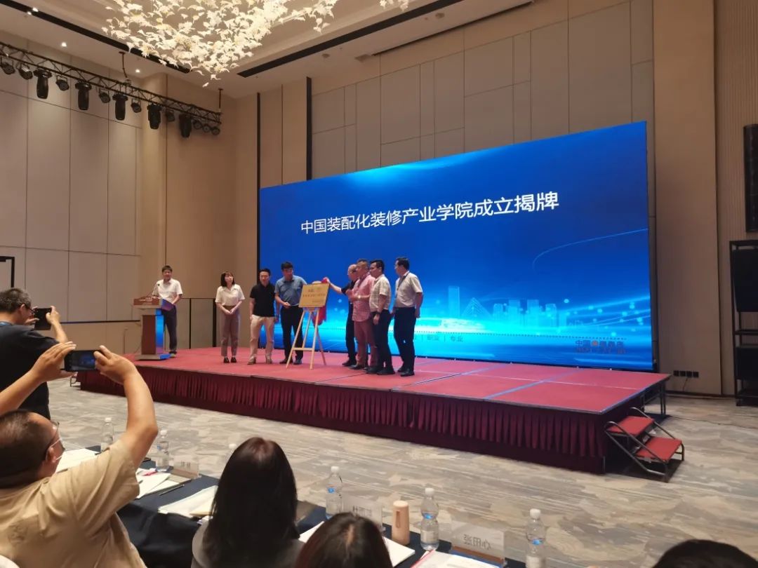 會議期間,舉行了中國裝配化裝修產(chǎn)業(yè)學(xué)院成立揭牌儀式。隨后,研究會領(lǐng)導(dǎo)、聯(lián)盟領(lǐng)導(dǎo)、企業(yè)領(lǐng)導(dǎo)參加了裝配式裝修產(chǎn)業(yè)人才培養(yǎng)基地揭牌儀式。
