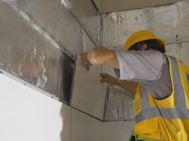 該項(xiàng)目采用了300*300mm、600*600mm、300*600mm干法快裝鎖扣式地面、墻面瓷磚和600*1200mm吸附式干法快裝地面瓷磚,總應(yīng)用面積約400㎡。