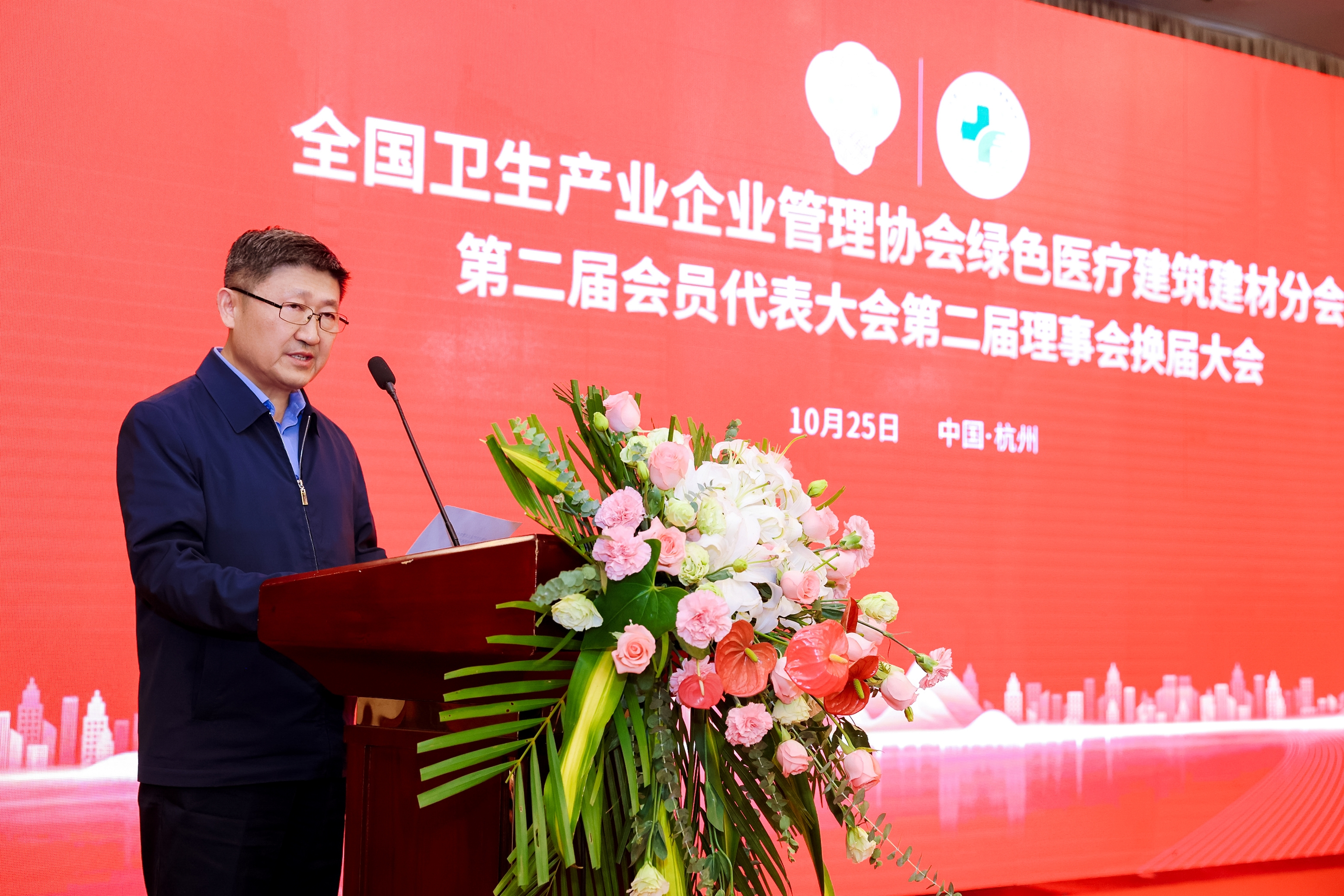 ▲全國衛(wèi)生產(chǎn)業(yè)企業(yè)管理協(xié)會綠色醫(yī)療建筑建材分會會長 安建偉